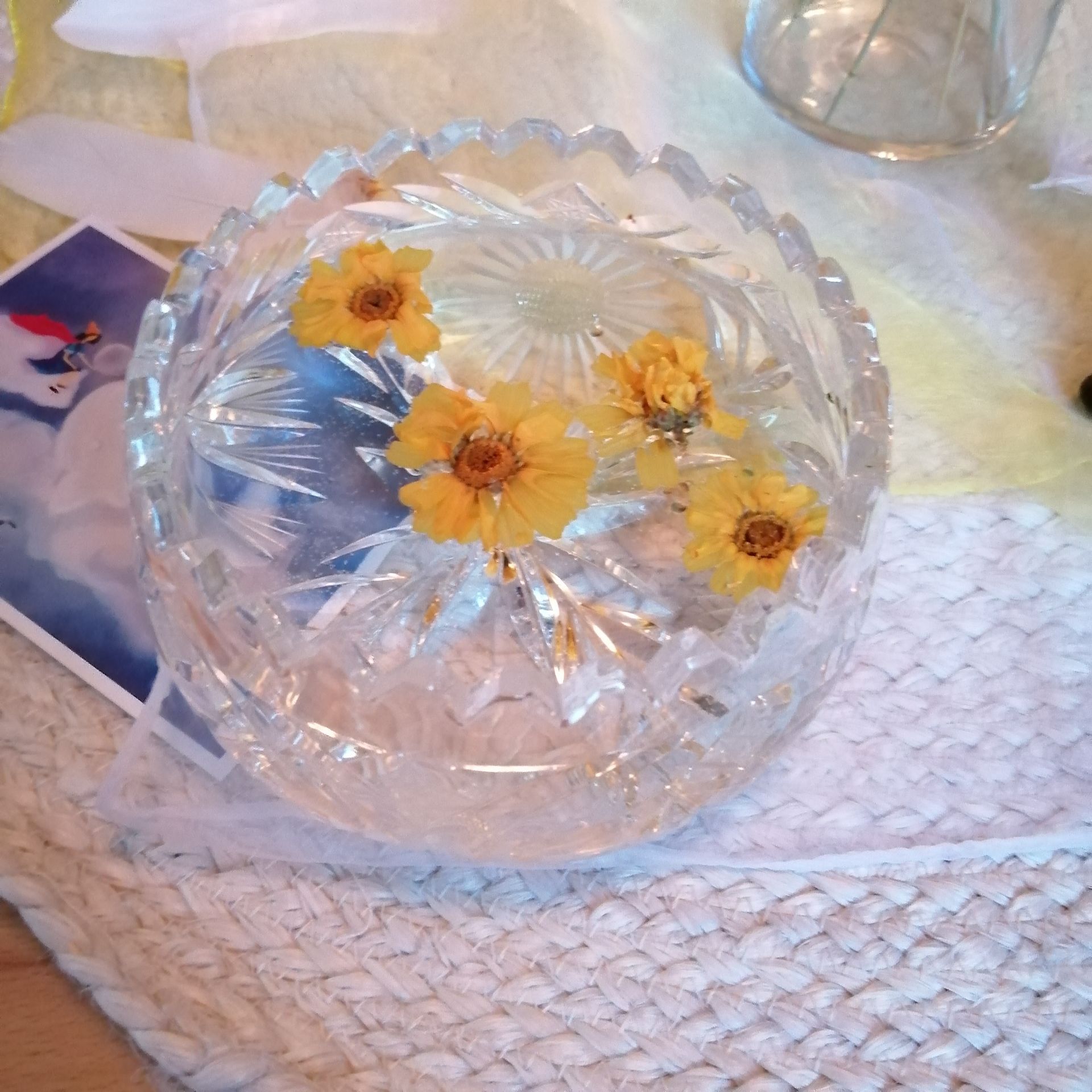 Kennst Du das Rosenwasser Ritual? Wir haben es mit kleinen gelben Margeritenblüten durchgeführt. Dabei durftest Du Dir eine Blüte aussuchen, Deine Gedanken und Wünsche verinnerlichen, an der Blüte riechen oder sie in den Händen zerreiben oder zart berühren, sie zerrupfen oder einfach in ihrer Form lassen um sie dann in eine mit Wasser gefüllte Schale "loszulassen".